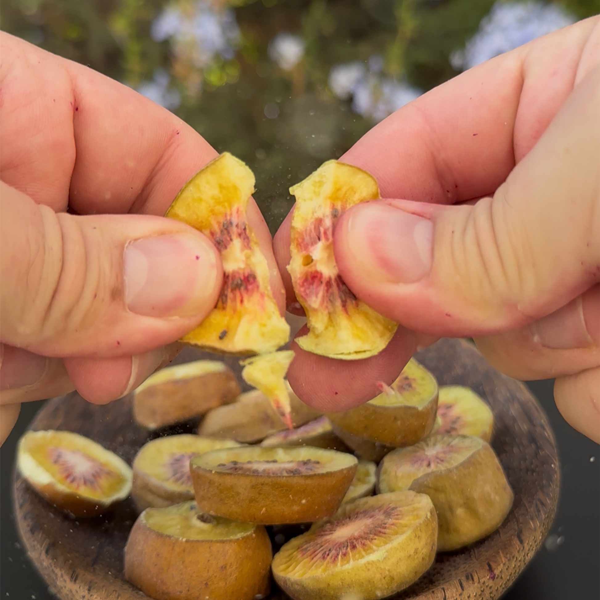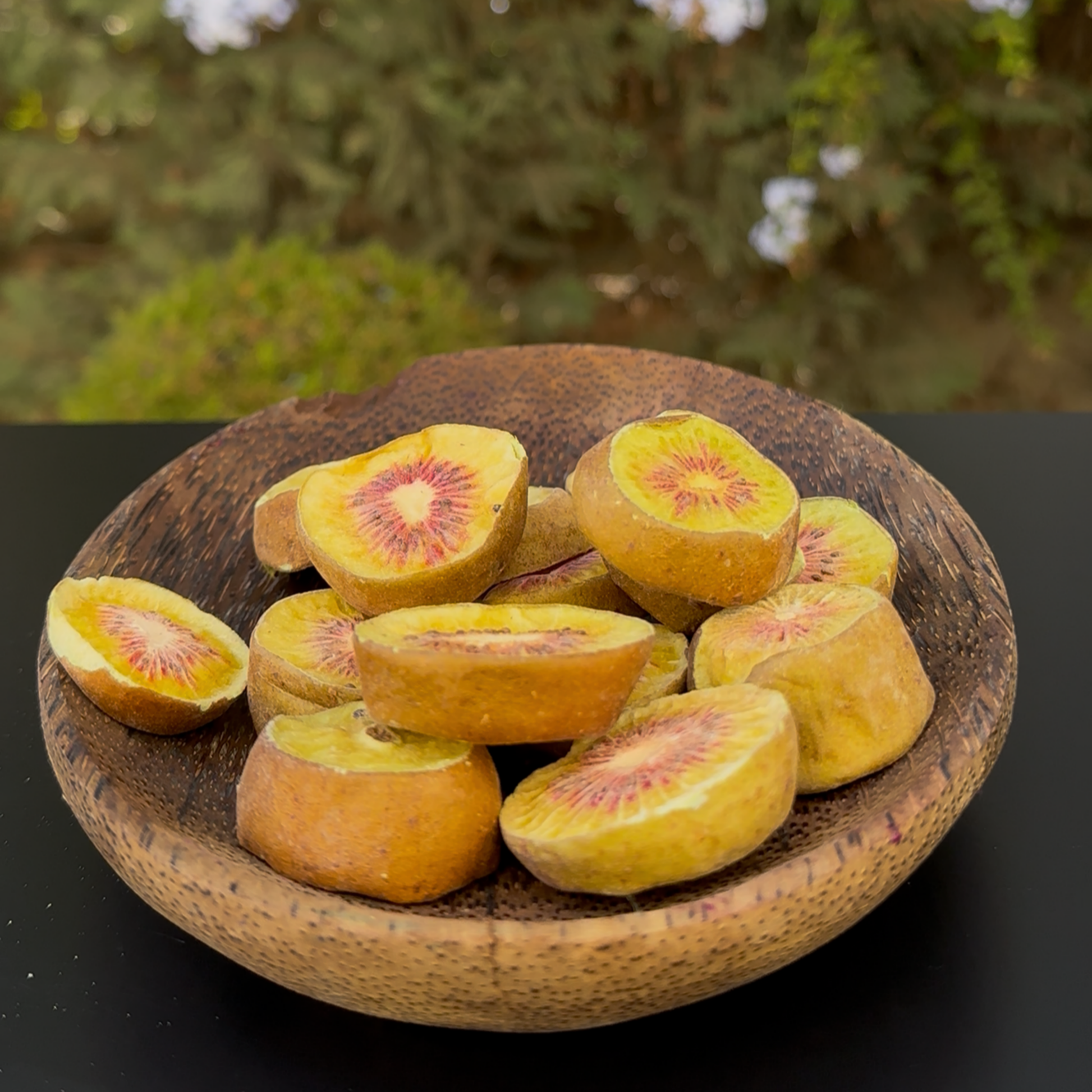 شيبس الكيوي الأحمر بنكهته المميزة وريحتُه الطبيعية، فيه مزيج بين الحلاوة واللذعة الخفيفة اللي بتنعش كل لقمة.