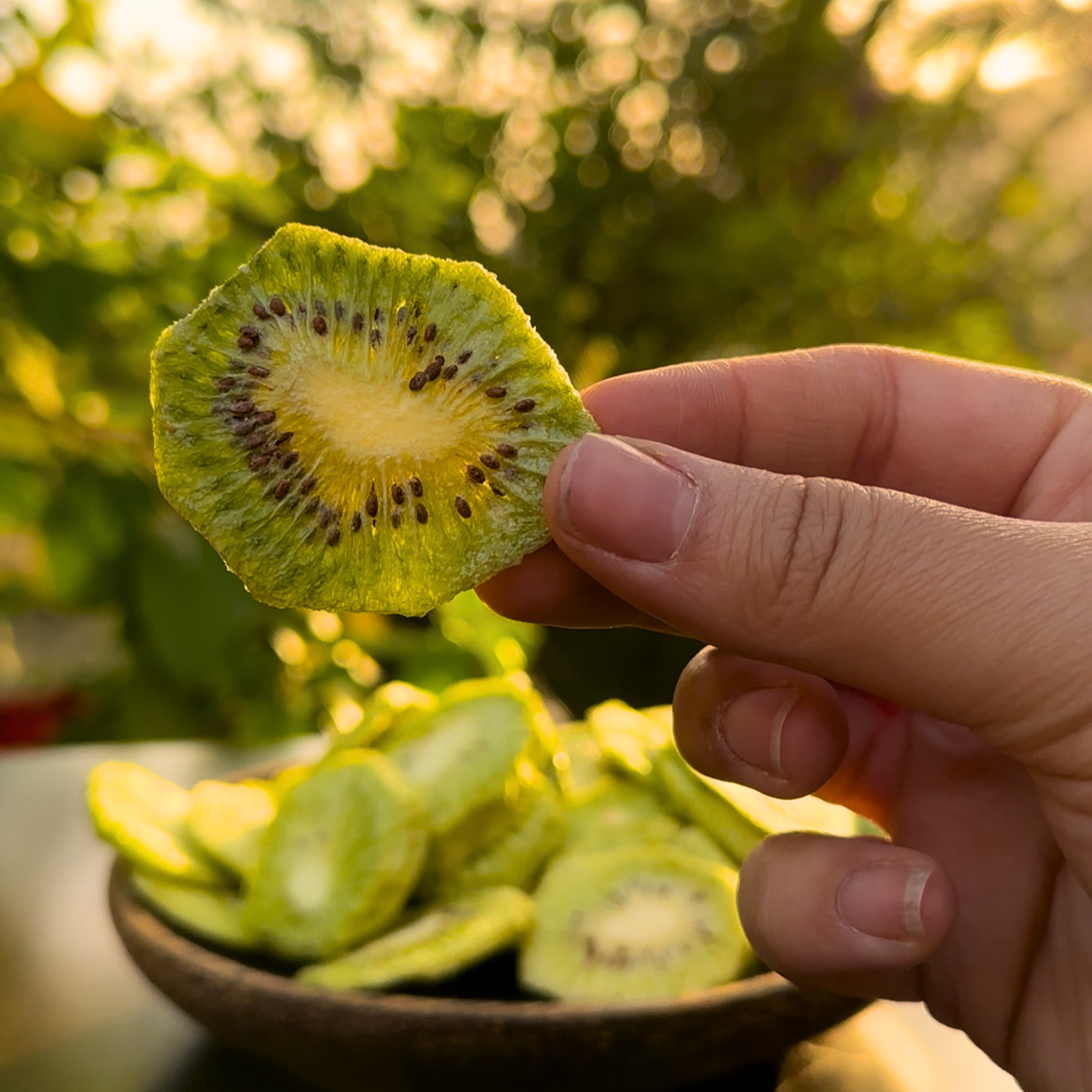 جففناه بالتجميد عشان يضل محافظ على كل فيتاميناته وفوايده، خصوصاً فيتامين C يلي الكيوي معبّي فيه 💪